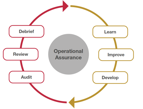 A diagram demonstrating the Operational Assurance Cyclical Model and the key input and outputs